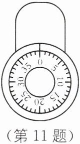 11. (2025·辽宁鞍山铁西区期中)小明和弟弟小东在玩如图所示的一种转盘型密码锁,每次开锁时需要先把表示“0”的刻度线与固定盘上的标记线对齐,再按顺时针或逆时针方向旋转带有刻度的转盘三次.小明按逆时针方向旋转10个小格记为“+10”,此时标记线对准的数是10.再顺时针旋转2个小格记为“-2”,再逆时针旋转3个小格记为“+3”.锁可以打开,那么开锁密码就可以记为“+10,-2,+3”.请计算说明此时标记线对准的刻度线表示哪个数?