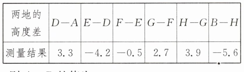 ∴B-A=(D-A)+(E-D)+(F-E)+(G-F)+(H-G)+(B-H)=3.3-4.2-0.5+2.7+3.9-5.6=-0.4(米),所以 A-B=0.4 米.