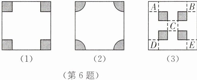 6. (1)探索:如图(1),在边长为$x$的正方形纸片的4个角都剪去1个边长是$a$的正方形.试用含$a,x$的式子表示纸片剩余部分的面积为