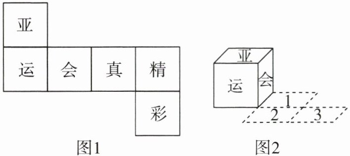 B 由题图,可知“亚”与“彩”是相对面,“运”与“真”是相对面,“会”与“精”是相对面,且正方体依次翻过第1格、第2格,到第3格时“亚”在下面,所以朝上一面上的字是“彩”。