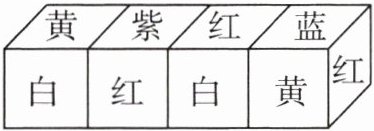 14 [几何直观][2024威海文登区期中联考]把正方体的六个面分别涂上白、黄、蓝、红、紫、绿六种不同的颜色,将上述大小相同、颜色分布一样的四个正方体,拼成一个如图所示放置的长方体,则正方体中与白色面相对的面的颜色是 ( )