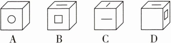 D 对于A项,圆圈在正面时,两竖线应在上下两面或左右两面,故A项不符合题意;对于B项,当正方形在正面,且含有线的一面为上面时,此面上的线应为竖线,故B项不符合题意;对于C项,折叠后,含有竖线的两个面应相对,故C项不符合题意。