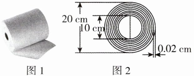 11 [2025青岛期末]图2是一卷空心卷筒纸(如图1所示)的截面示意图,其外直径为20cm,内直径为10cm,每层纸的厚度为0.02cm。假如把这卷空心卷筒纸全部拉开,那么这卷空心卷筒纸的总长度为______cm。