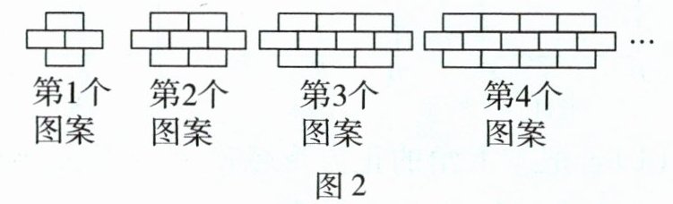 (4)工人师傅铺设地砖时,小明用若干块大小相同的长方形地砖按规律摆成如图2所示的图案,则第n个图案中长方形地砖的块数为____。