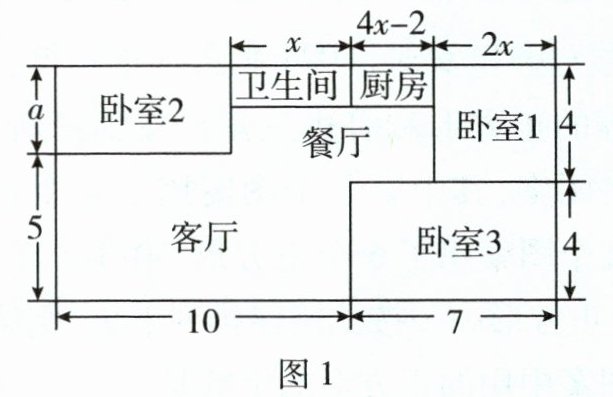 2 小明同学家的住房户型呈长方形,平面图(单位:m)如图1,现准备铺设地面,三间卧室铺设木地板,其他区域铺设地砖。