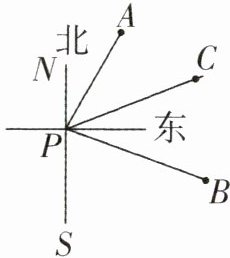 14 [2024黔东南州期中]如图,已知轮船A在灯塔P的北偏东$30^{\circ }$的方向上,轮船B在灯塔P的南偏东$70^{\circ }$的方向上。