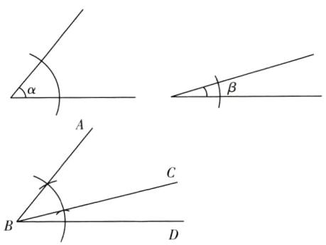 4 [教材P126T5变式]尺规作图:已知$∠α,∠β$,作$∠ABC$,使得$∠ABC= ∠α-∠β$。(不写作法,保留作图痕迹)