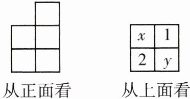 7 由若干个相同的小立方块搭成的一个几何体,从正面和上面看到的形状图如图所示,小正方形中的字母或数字表示该位置上小立方块的个数,则x= ______,y= ______。
