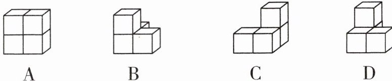 3 [2024威海中考]下列几何体都是由四个大小相同的小立方块搭成的。其中从正面、左面、上面看到的形状图完全相同的是 ( )