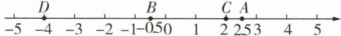 解:点A,B,C,D表示的有理数分别是2.5,-0.5,2,-4.