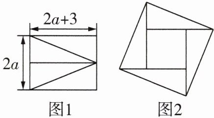 8 [2022金华中考]如图$1$,将长为$2a + 3$,宽为$2a$的长方形分割成四个完全相同的直角三角形,拼成“赵爽弦图”(如图$2$),得到大小两个正方形.