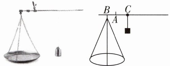 7 [2023宁夏中考]如图是某种杆秤.在秤杆的点$A$处固定提纽,点$B$处挂秤盘,点$C为0$刻度点.当秤盘不放物品时,提起提纽,秤砣所挂位置移动到点$C$,秤杆处于平衡.秤盘放入$x$克物品后移动秤砣,当秤砣所挂位置与提纽的距离为$y$毫米时秤杆处于平衡.测得$x与y$的几组对应数据如表.由表中数据的规律可知,当$x = 20$时,$y = $
