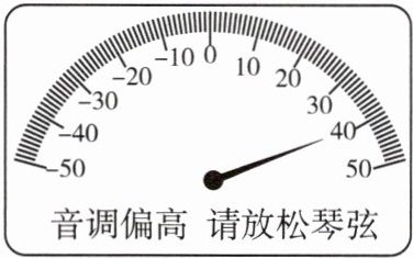 10 [2025洛阳期末]古筝是中国独特的民族乐器之一,为了保持音准,弹奏者常使用调音器对每根琴弦进行调音.如图所示是某古筝调音器软件的界面,指针指向40表示音调偏高,需放松琴弦.下列指针指向的数字中表示需拧紧琴弦,且最接近标准音(指针指在0处为标准音)的是(