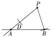 1 [2024重庆南岸区期末节选]如图,已知直线AB,点P在直线AB外.按要求用尺规作图,不写作法,保留作图痕迹:在射线PA上求作一条线段PD,使得PD= PB.