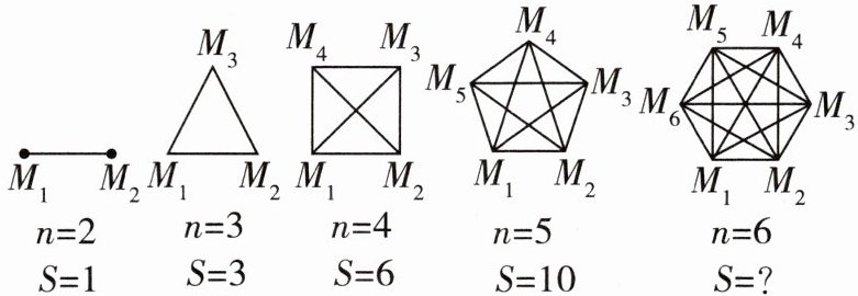 【模型构建】用点$ M_{1} $,$ M_{2} $,$ M_{3} $,…$ $,$ M_{50} $分别表示第1,2,3,…$ $,50名同学,把该班级人数n与视频通话次数S之间的关系用如图模型表示: