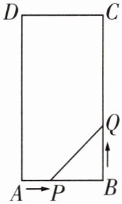 解:由题意知,$ AP=t\ \text{cm} $,$ BQ=2t\ \text{cm} $,故$ PB=(6-t)\ \text{cm} $,设△PBQ的面积为$ S_1\ \text{cm}^2 $,矩形ABCD的面积为$ S_2\ \text{cm}^2 $,则$ S_1=\frac{1}{2}\cdot(6-t)\cdot2t=-t^2+6t $,$ S_2=6×12=72 $,