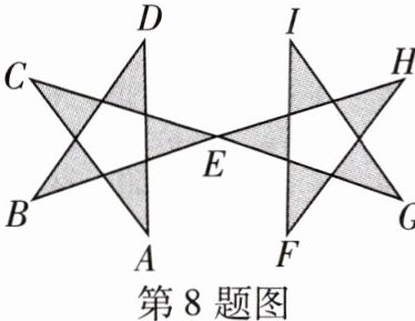 8 如图,两个五角星关于某一点中心对称,则对称中心和点A的对称点是( )