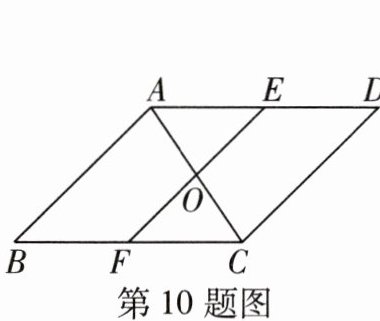 10 如图,已知$\triangle ABC与\triangle CDA$关于点O中心对称,过点O作直线EF分别交AD,BC于点E,F,给出下列结论:①点E与点F、点B与点D分别是关于点O的对称点;②直线BD必经过点O;③四边形DEOC与四边形BFOA的面积相等;④$\triangle AOE与\triangle COF$关于点O中心对称. 其中正确的结论是____.(填序号)