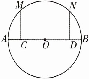 16 推理能力如图,在$\odot O$中,C,D是直径AB上的两点,且$AC= BD$,$MC\perp AB$,$ND\perp AB$,点M,N在$\odot O$上.
