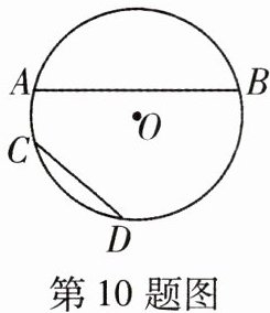 10 一题多解易错题[2025鞍山千山区期中]如图,$\overset{\frown}{AB}$,$\overset{\frown}{CD}是\odot O$的两段弧,且$\overset{\frown}{AB}= 2\overset{\frown}{CD}$,则弦AB与CD之间的关系为 ( )