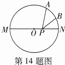 14 如图,A是半圆MN的三等分点,B是$\overset{\frown}{AN}$的中点,P是直径MN上一动点,$\odot O$的半径为1,则$AP+BP$的最小值为______.