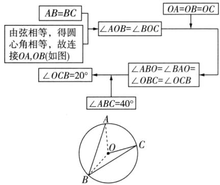 13 如图,点A,B,C在$\odot O$上,分别连接AB,BC,OC.若$AB= BC$,$\angle B= 40^{\circ}$,则$\angle OCB$的度数为______.