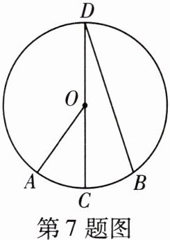 7 一题多解 [2024云南中考]如图,CD是$\odot O$的直径,点A,B在$\odot O$上.若$\overset{\frown }{AC}= \overset{\frown }{BC}$,$∠AOC= 36^{\circ }$,则$∠D= $ ( )