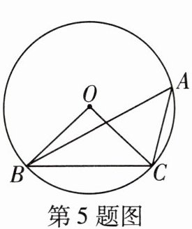 5 [2024陕西中考]如图,BC是$\odot O$的弦,连接OB,OC,$∠A是\overset{\frown }{BC}$所对的圆周角,则$∠A与∠OBC$的度数和是____.