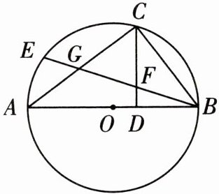 15 如图,AB是$\odot O$的直径,点C在$\odot O$上,$CD⊥AB$,垂足为D,且$\overset{\frown }{CE}= \overset{\frown }{BC}$,BE分别交CD,AC于点F,G,连接BC.