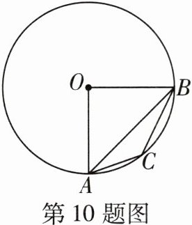 10 [2023杭州中考]如图,在$\odot O$中,半径OA,OB互相垂直,点C在劣弧AB上.若$∠ABC= 19^{\circ }$,则$∠BAC= $ ( )