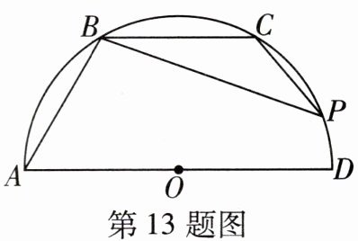 13 [2024海南中考]如图,AD是半圆O的直径,点B,C在半圆上,且$\overset{\frown }{AB}= \overset{\frown }{BC}= \overset{\frown }{CD}$,点P在$\overset{\frown }{CD}$上,若$∠PCB= 130^{\circ }$,则$∠PBA$等于 ( )