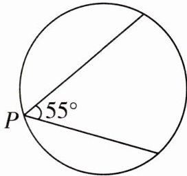 14 [2023郴州中考]如图,某博览会上有一圆形展示区,在其圆形边缘的点P处安装了一台监视器,它的监控角度是$55^{\circ }$,为了监控整个展区,最少需要在圆形边缘上共安装这样的监视器____台.