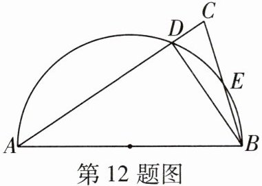 12 [2025宿迁期中]如图,以$\triangle ABC$的一边AB为直径的半圆与其他两边AC,BC分别交于点D,E,且E为BC的中点.若$AB= 8$,$BC= 4$,则BD的长为 ( )