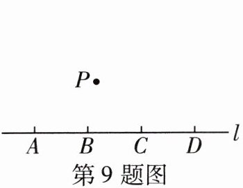 9 [2023江西中考]如图,点A,B,C,D均在直线l上,点P在直线l外,则经过其中任意三个点,最多可画出圆的个数为 ( )