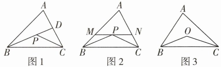 (3)解:如图,延长BO交AC于点D,由AB + AD > BD,OD + CD > OC,可得AB + AC > OB + OC.根据三角形的三边关系可得OB + OC > BC.