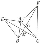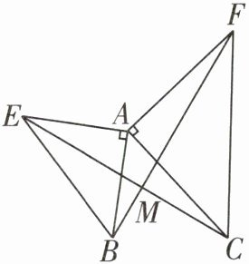 5 如图,在$\triangle ABE和\triangle ACF$中,$∠BAE= ∠CAF= 90^{\circ }$,$AE= AB$,$AC= AF$,EC与BF相交于点M。