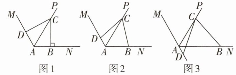 11 推理能力 [2024保定期末]已知$∠MAN$,AP平分$∠MAN$,定点C在射线AP上,$∠DCB$与射线AN交于点B,与直线AM交于点D,且$∠MAN+∠DCB= 180^{\circ }$.