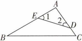 A 通解 在△ABC中,∠A=180°-∠B-∠C=95°.在△AED中,∠1+∠2=180°-∠A=85°.
