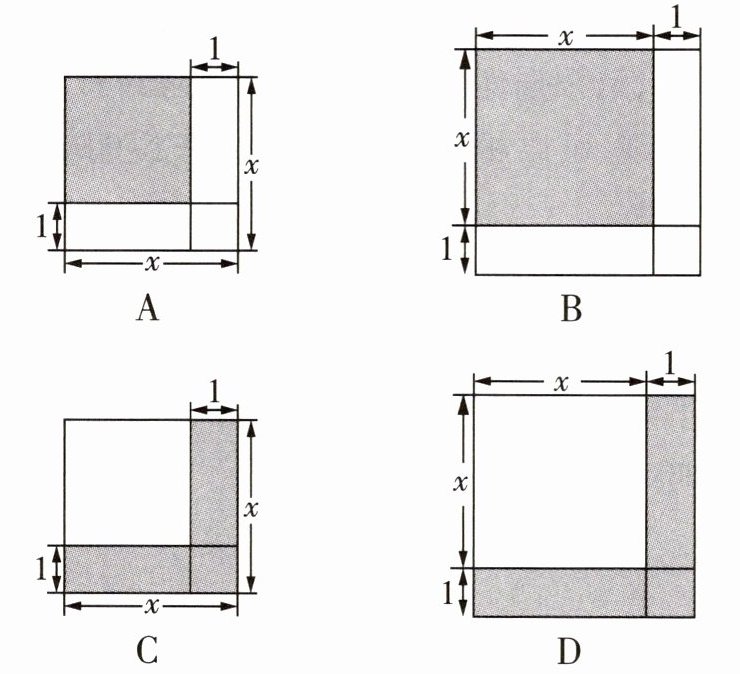 2 [2025石家庄藁城区期末]下列图形阴影部分的面积能够直观地解释$(x-1)^{2}= x^{2}-2x+1$的是( )