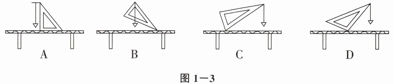 3. 利用铅垂线和三角尺可以判断桌面是否水平,如图1-3所示的做法中正确的是(