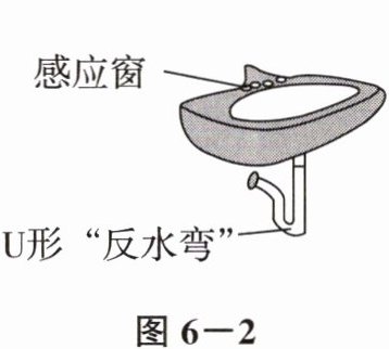 5. 图 6-2 是一种常见的全自动感应水龙头,当手伸到感应范围内时,水龙头自动出水;当手离开感应范围时,水龙头自动关闭,这是利用