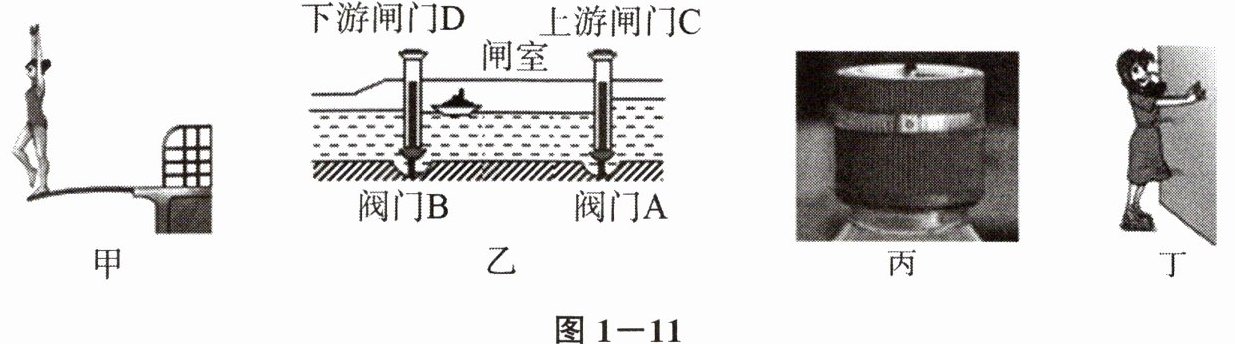 B. 乙图中关闭下游阀门B,打开上游阀门A,闸室和上游底部连通、上端开口,构成连通器,B正确;