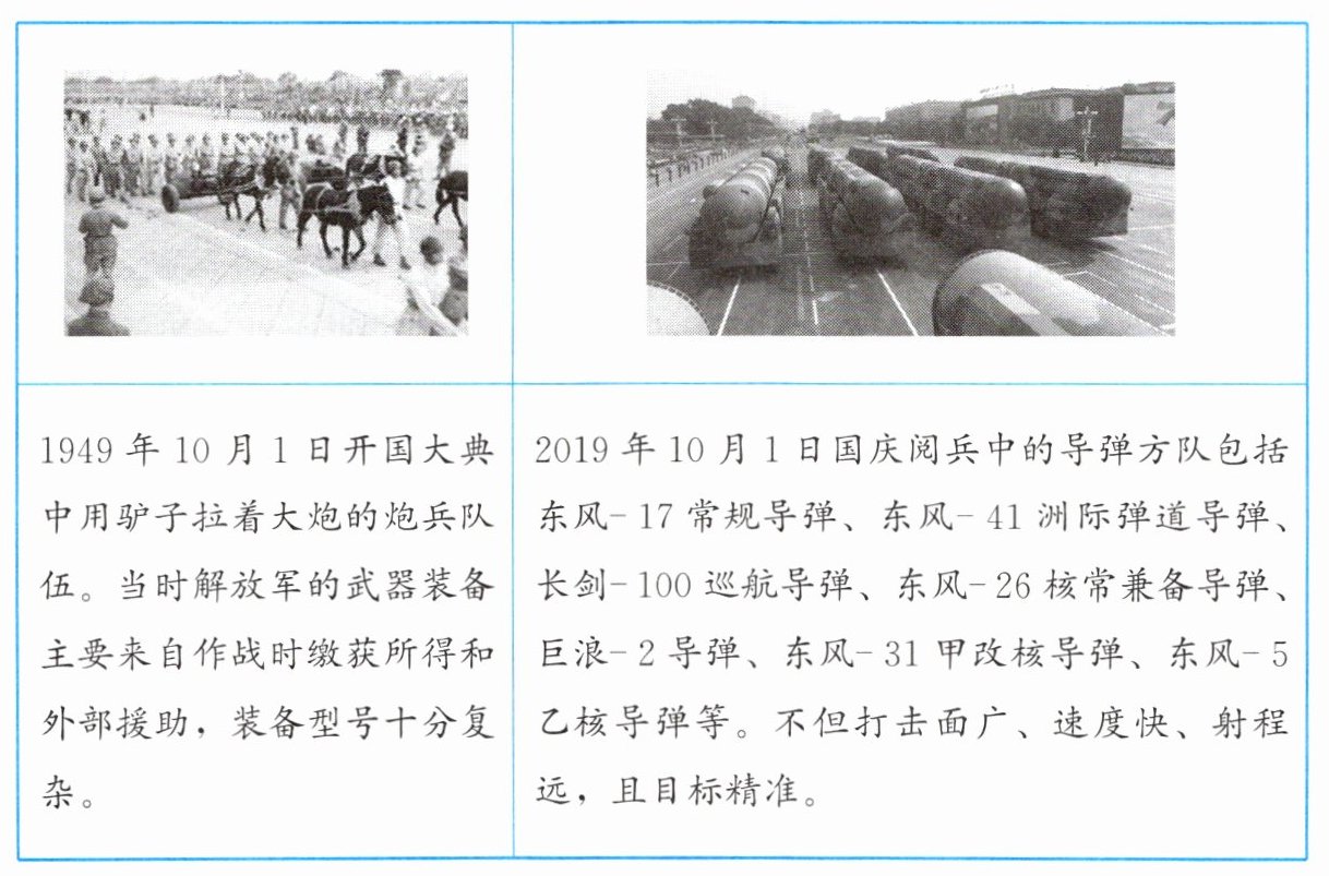 (2)从1949年开国大典阅兵和2019年国庆阅兵的对比中,你获得了哪些重要信息?