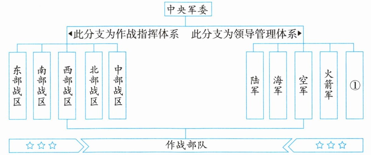 (3)结合所学知识,图中①位置缺失的是中国人民解放军现有五大军种中的哪一军种?