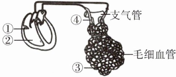 9. 如下为肺循环示意图,箭头表示血流方向,①②③④表示结构。下列说法错误的是(