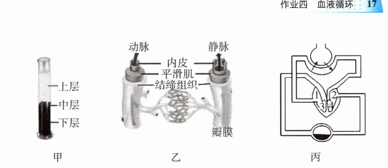 (1)细胞是生物体结构和功能的基本单位。将含有抗凝剂的血液离心或者静置一段时间后,会出现分层现象(图甲)。上层是血浆,中层是