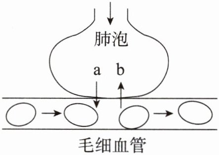 8. 如下是肺泡与血液之间的气体交换示意图,其中a、b表示气体。下列有关叙述错误的是(