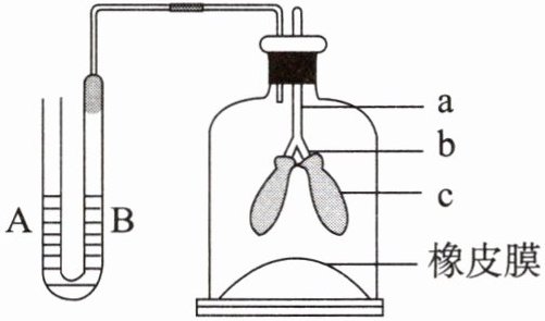 6. 某同学设计了如下装置,用来模拟肺与外界的气体交换,a、b、c模拟呼吸系统的相应结构,橡皮膜模拟膈。下列说法正确的是(
