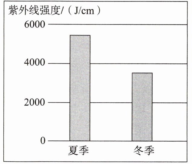 ③测量同年当地夏季和冬季紫外线强度并求平均值,绘制下图。