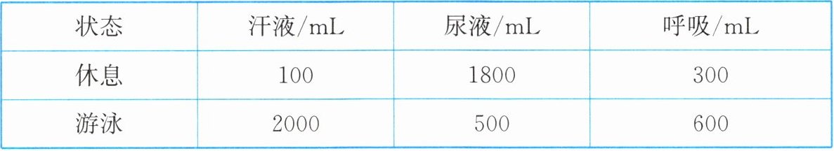 (2)根据表 1 分析,游泳时尿液明显减少的原因是